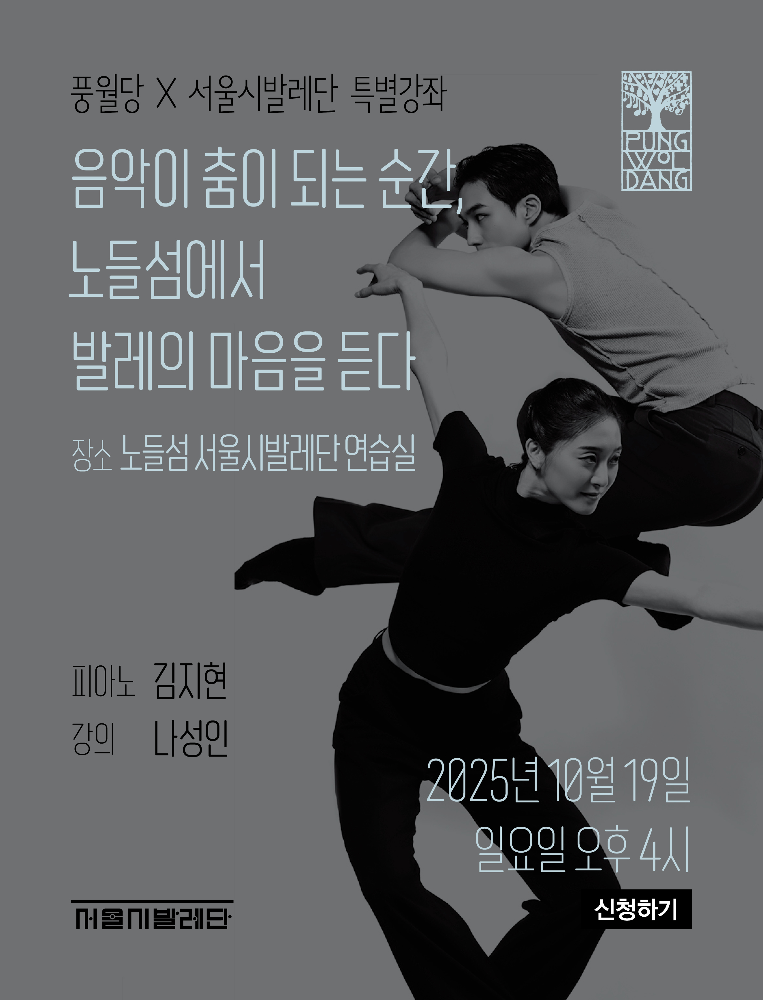 풍월당 쇼케이스 | 10월 19일 일요일 오후 4시 강의 · 나성인│[풍월당 × 서울시발레단 특별 강좌] 허용순과 한스 판 마넨의 무대 음악이 춤… 페이지 정보 작성자 풍월당 작성일25-10-10 15:04 조회41회 댓글0건 관련링크 이전글 다음글 목록 본문 댓글목록 등록된 댓글이 없습니다. 이전글 다음글 목록